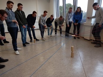 In einem Turmbau-Spiel sowie beim Ballwerfen und Ballfangen wurde klar, dass nur gemeinsam und in Absprache eine Aufgabe mit Erfolg gemeistert werden kann. Auch Rücksichtnahme, Eingehen auf den Schwächeren, Motivation und Flexibilität sind wesentliche Komponenten.